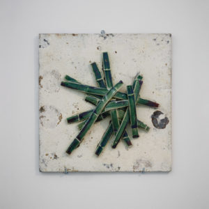 Beautiful and desolate dead branches, often found in Chinese painting of the Southern Song Dynasty (1127-1279), late Ming Dynasty (1368-1644) or in Japanese painting from the Edo period (1603-1867), which usually represent the repository feeling of travelers or the disillusionment of literati. In the series Piercing game, Qi renders the dead branches by shaping ceramics in a wood-fired kiln. This transformation between both substances seems to make us go lost in our understandings between ceramics and wood. Who give birth to whom ? Which one is the subject of the work? But his mischief intensifies even further: the broken branches are joined together by staples, and the failed pieces from the glass workshop are casted on the end of the branches, as if the flowers of impossibility are blooming on the branches, as an impossible outcome of the history.