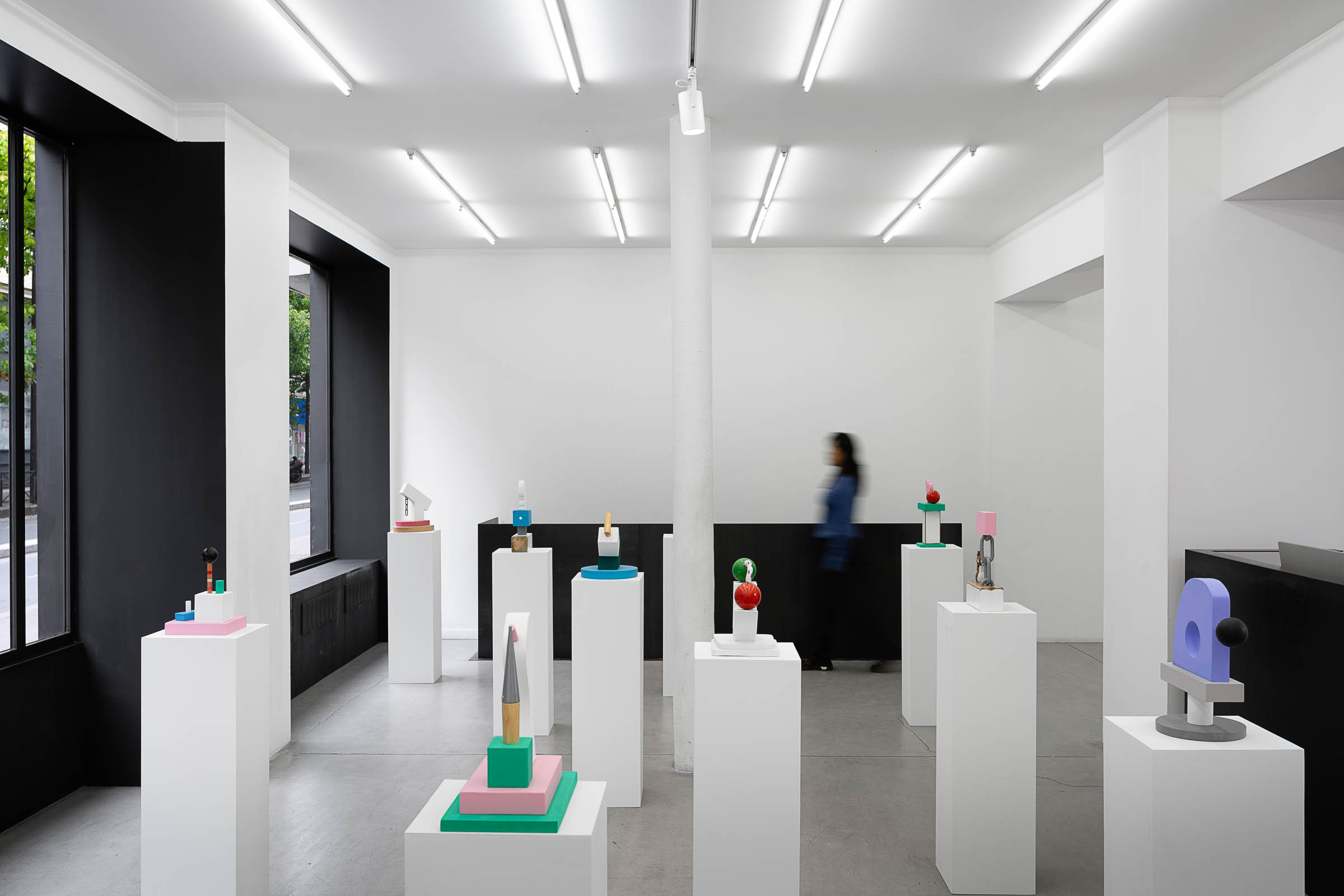 The first set of works opening the exhibition belongs to the “Milan” series (2024), a title that confirms Jacques Julien’s inclinations towards forms conceived by the artists and designers of the Milanese Memphis group, founded in 1980 by Ettore Sottsass, and towards the Italian avant-garde, particularly Lucio Fontana’s Teatrini (1964-1966) and the sculptural miniatures of Lucio Del Pezzo and Fausta Squatriti (Sculture colorate, 1964-1974).