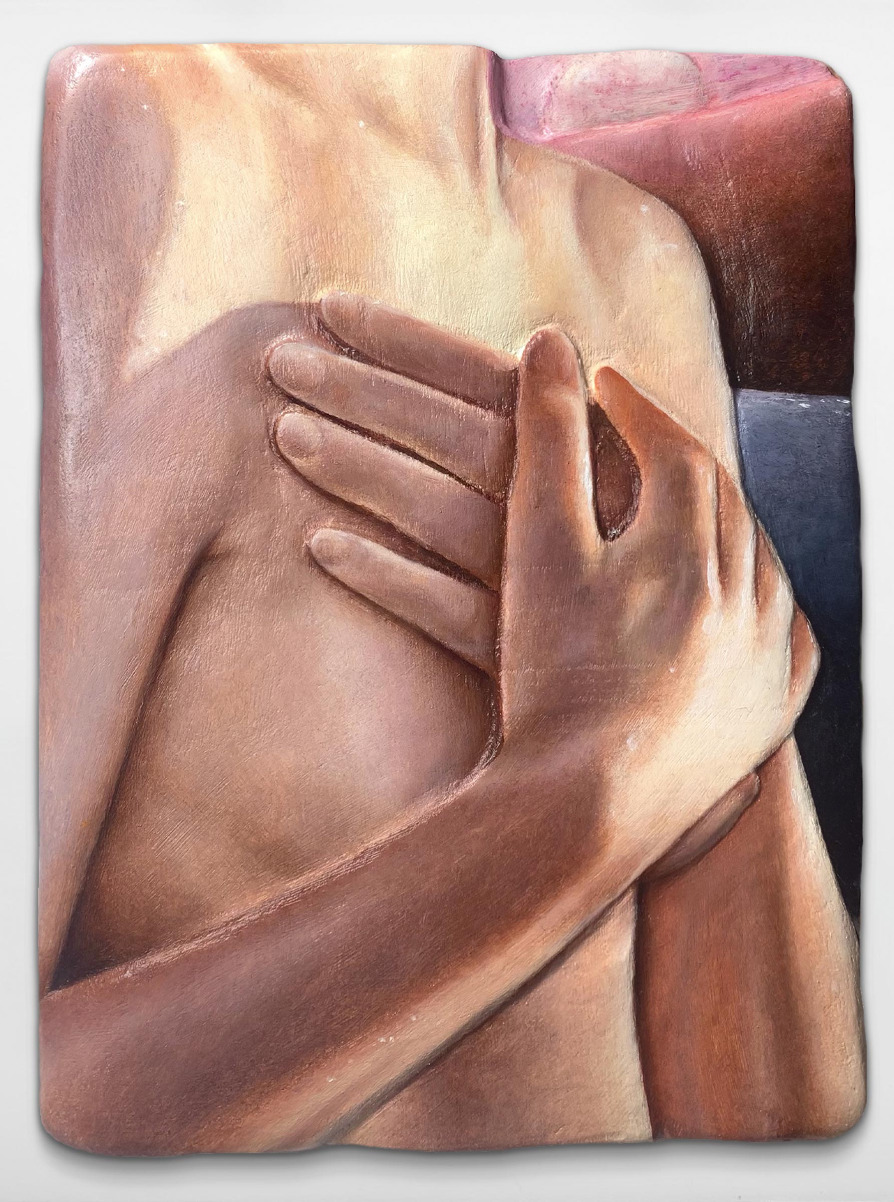 « I’m looking for a gripping effect with, for example, the recurring motif of hands. By depicting them intertwined, I aim to provoke sensations, memories and even carnal desires in the viewer. » – Marguerite Piard