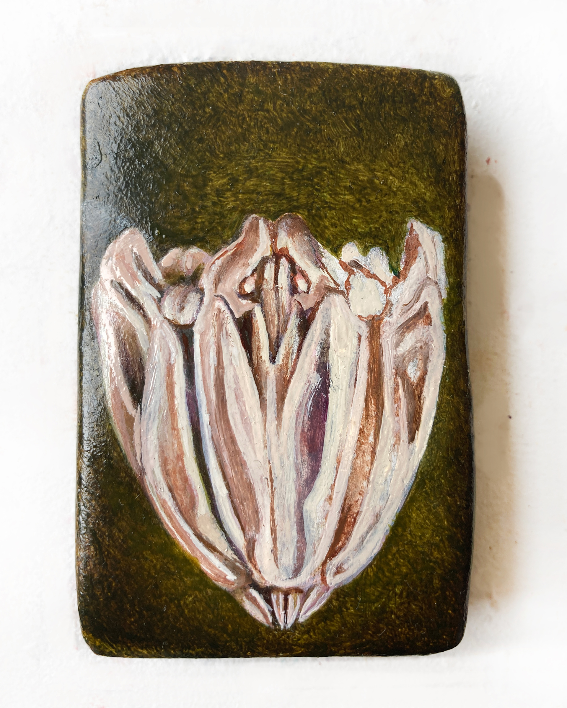 This tension is also facilitated by the specific technique used: Marguerite Piard does not wait for the paint to dry to apply a second layer that will pull the first. The result is marbled and sometimes granulated texture effects, like a dried plain trembling with pleasure at the arrival of rain. This painting, visually close to encaustic, further encloses the body upon itself; it encases it like a liquid that two palms attempt to contain.